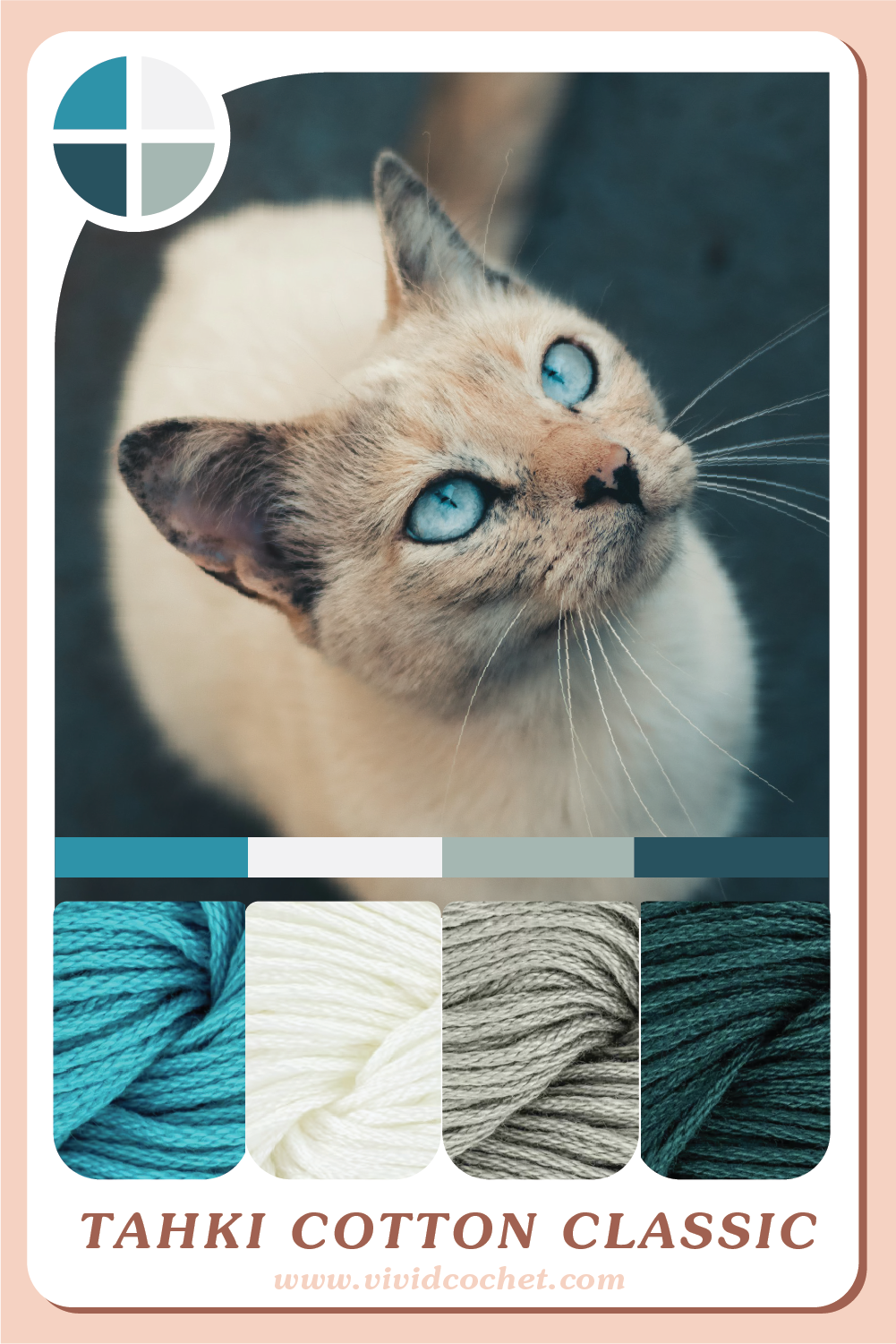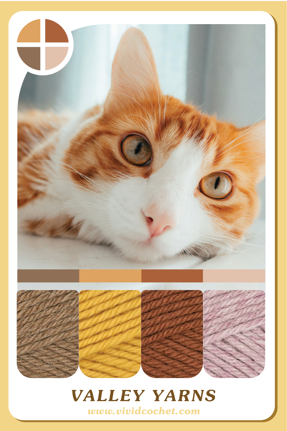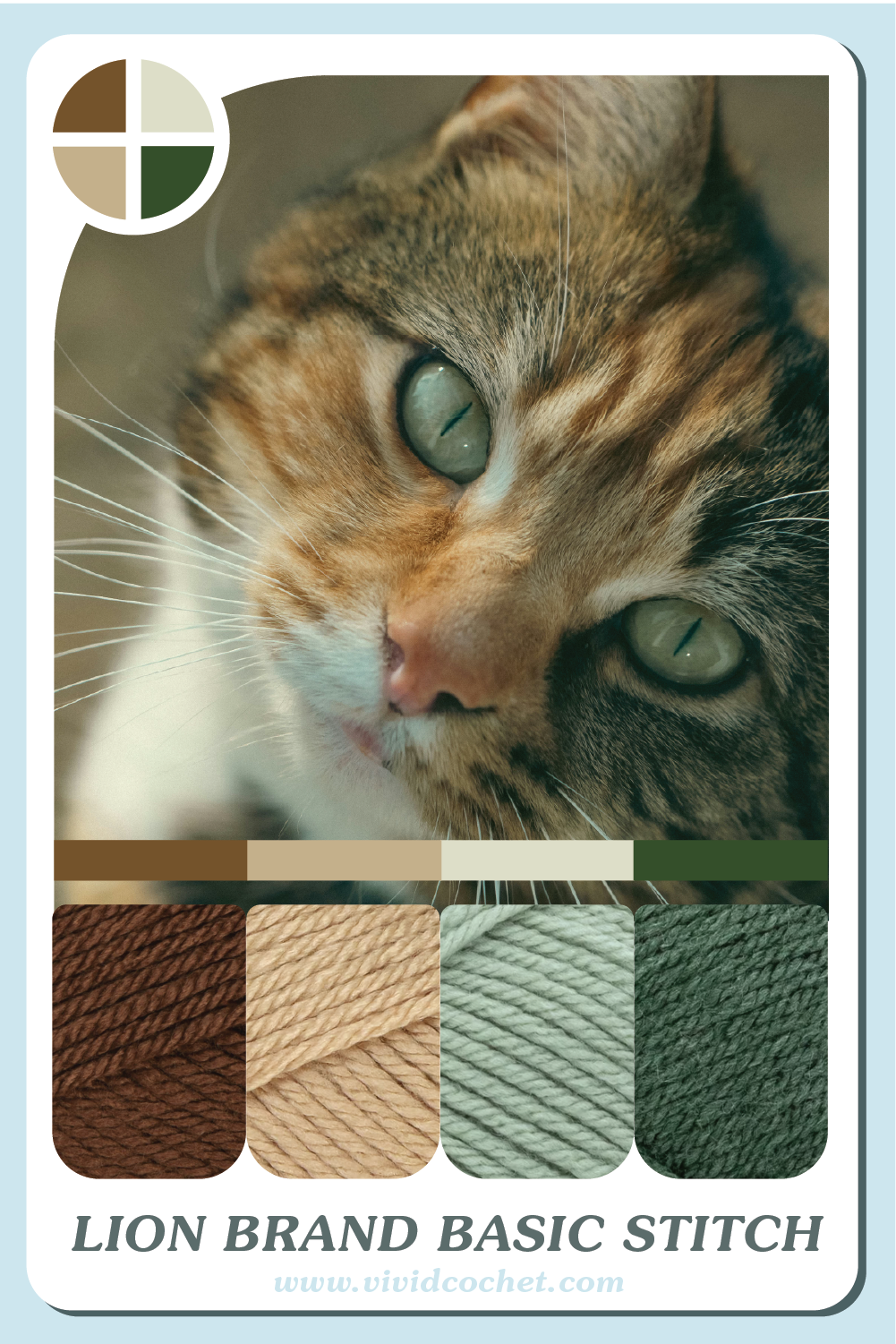 This collection features palettes inspired by the Felis catus eyes! We’ve got 8 color palettes inspired by some of the chillest Cool Catz and the Sweetest Kitties! May you find enjoyment and creativity for all your crochet projects!