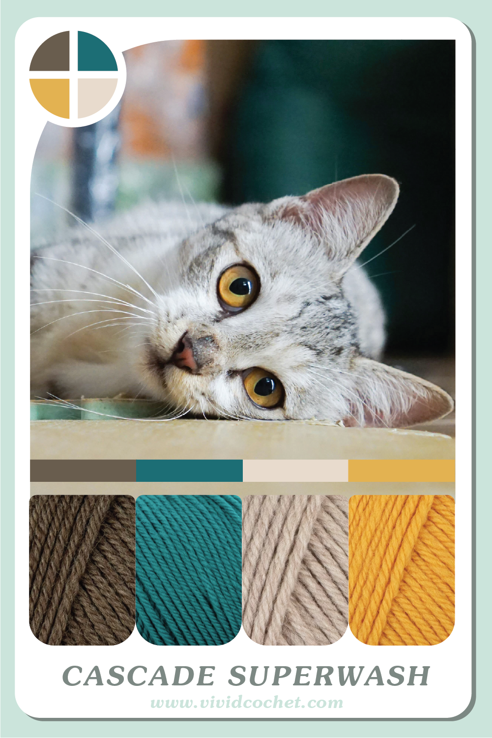 Jessica here!! Your inspiration guru reporting for duty. On the menu for this month’s dose of yarn color inspo we have Felis catus (cats). More specifically their stunning eyes. Look how absolutely beautiful these cats’ eyes are. So for all the cat lovers out there. I present my Cat Eyes – Captivating Yarn Color Palette Collection.
