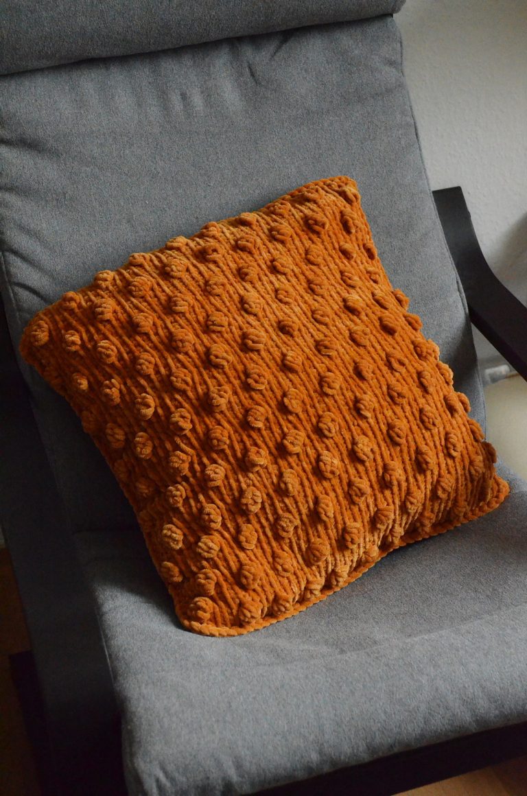 This cozy solid color accent pillow would make the perfect quick and easy holiday gift! Make a soft and velvety pillow with bobbles, using Tunisian crochet stitches and the quick-working baby chenille yarn.