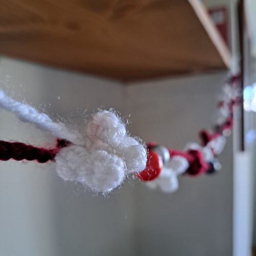 Hello and welcome! Every year I have some small yarn buster projects that I like to make, and holiday garlands are on that list. Holiday Garlands are some of the most simple elegant ways you can brighten up your tree, mantle or window sill. I happen to have nice bay window sills in my home and my kids and I love to decorate them each season!