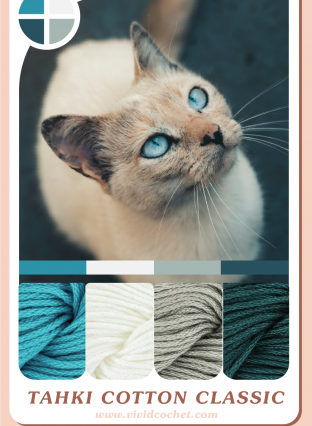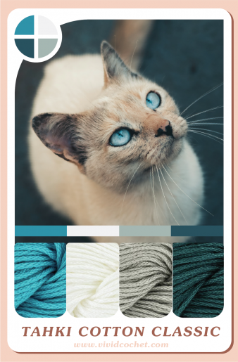 This collection features palettes inspired by the Felis catus eyes! We’ve got 8 color palettes inspired by some of the chillest Cool Catz and the Sweetest Kitties! May you find enjoyment and creativity for all your crochet projects!